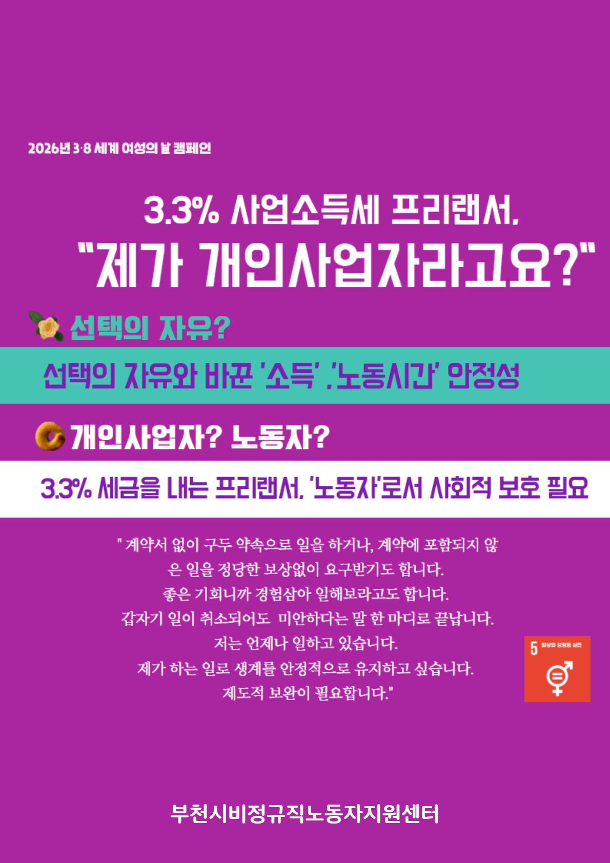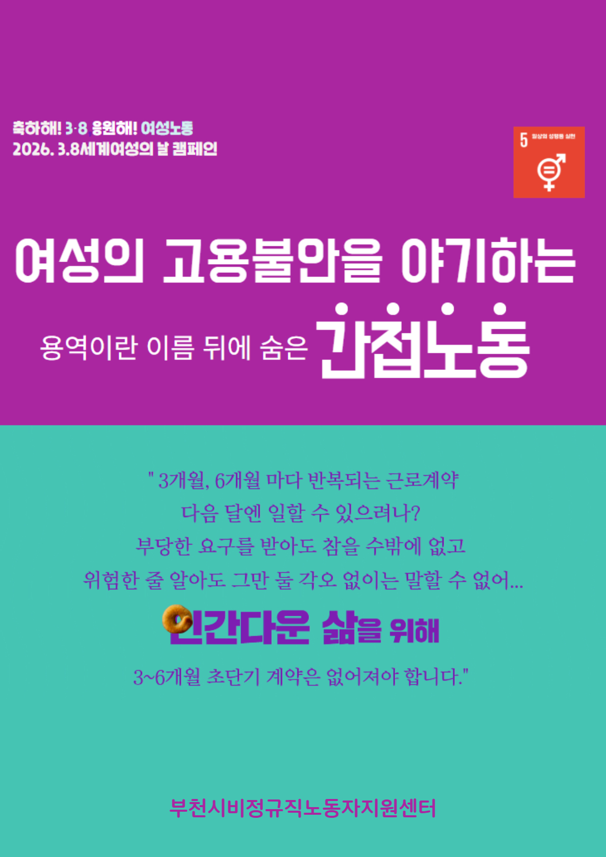 세계여성의 날 캠페인<축하해! 3.8, 응원해! 여성 노동>